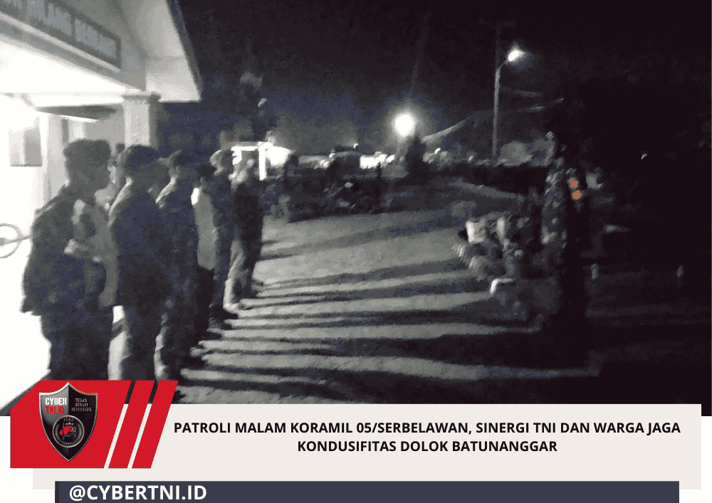 CyberTNI.id | Simalungun, 13 Februari 2026 — Dalam upaya menjaga keamanan dan ketertiban masyarakat (Kamtibmas), jajaran Koramil 05/Serbelawan yang berada di bawah naungan Kodim 0207/Simalungun melaksanakan patroli bersama Binaan Komunikasi (Binkom), Jumat malam (13/2), pukul 20.30 WIB, di wilayah Kecamatan Dolok Batunanggar.