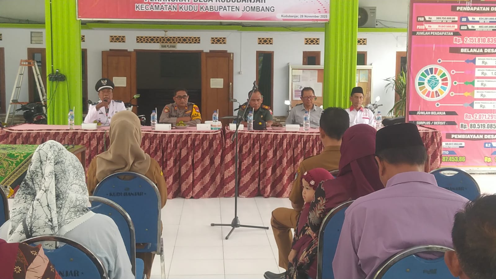 Acara ini turut dihadiri oleh unsur Forkopimcam Kudu, meliputi Kapolsek, Danramil, perwakilan Kecamatan Kudu, BPD Kudubanjar, perangkat desa, tokoh masyarakat, serta para undangan yang hadir untuk memberikan dukungan moral kepada perangkat desa yang baru dilantik.