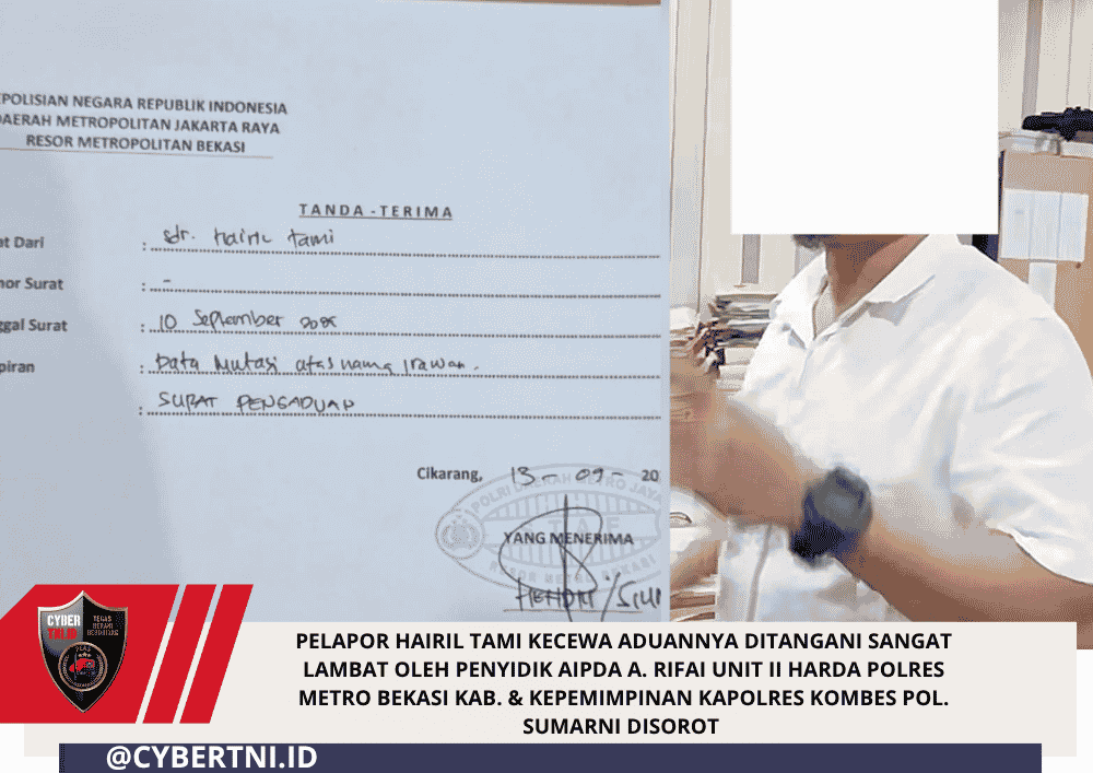 “Saya sangat kecewa dengan lambannya penanganan perkara yang saya adukan di Polres Metro Bekasi ( Kabupaten ). 10 September 2026 saya didampingi Pengacara saya melaporkan Dugaan Tindak Pidana Penggelapan dengan Pemberatan yang menimpa PT saya di Polres Metro Bekasi. Dan lama sekali tidak ada respon dari Polres Metro Bekasi Kabupaten sampai saya meminta Kuasa Hukum saya mendatangi dan menanyakan perkembangannya. Dan kemaren juga saya meminta Kuasa Hukum saya meminta SP2HP kepada Penyidik Rifai Unit II Harda yang menangani Perkara saya. Pengacara saya sudah menghubungi lewat wa Penyidik Rifai tetapi Tidak direspon sama sekali, ujar Hairil Tami.