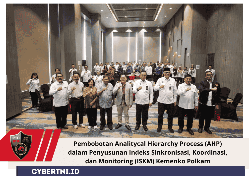 CyberTNI.id| Polkam, Selasa 28 Oktober 2025 — Kementerian Koordinator Bidang Politik dan Keamanan (Kemenko Polkam) melaksanakan kegiatan Pembobotan Analytical Hierarchy Process (AHP) sebagai tahapan penting dalam penyusunan Indeks Sinkronisasi, Koordinasi, dan Monitoring (ISKM) di Jakarta, Selasa (28/10).