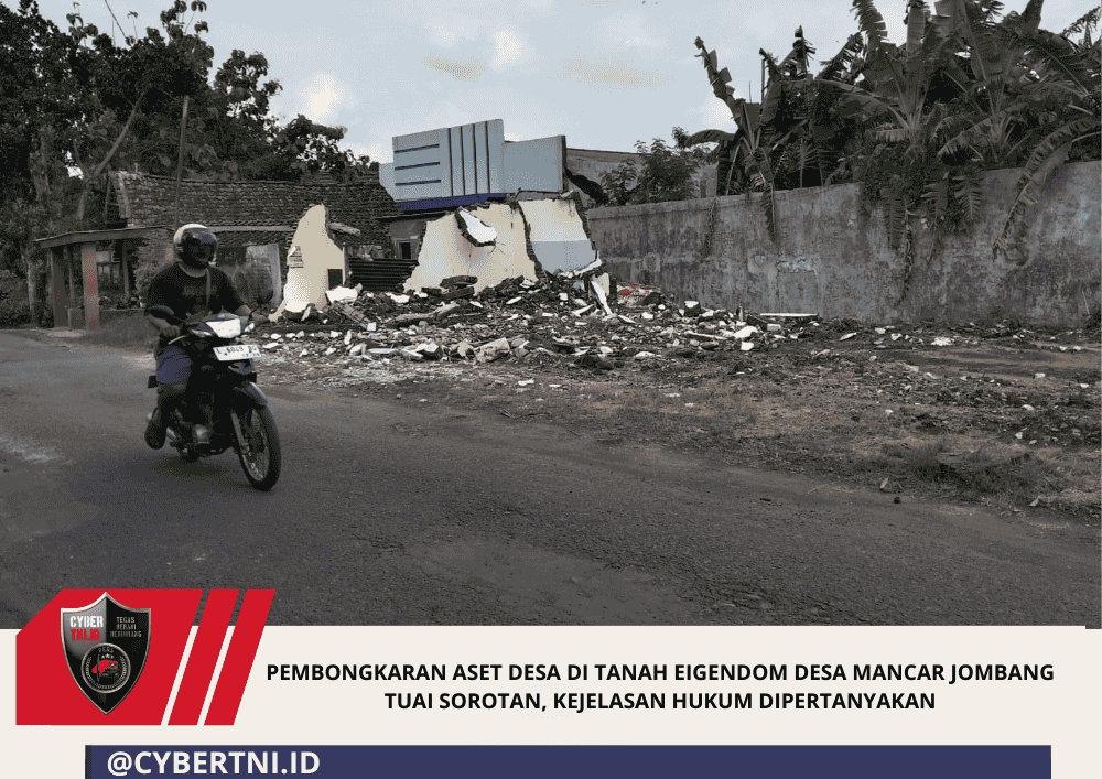 CyberTNI.id | Jombang,24 Februari 2026 — Pembongkaran empat bangunan yang berdiri di atas lahan berstatus tanah eigendom di Desa Mancar, Kecamatan Peterongan, Kabupaten Jombang, sempat mencuat dan menuai sorotan publik. Namun hingga kini, peristiwa tersebut dinilai belum memiliki kejelasan, baik dari sisi hukum maupun tanggung jawab pemerintah desa setempat.