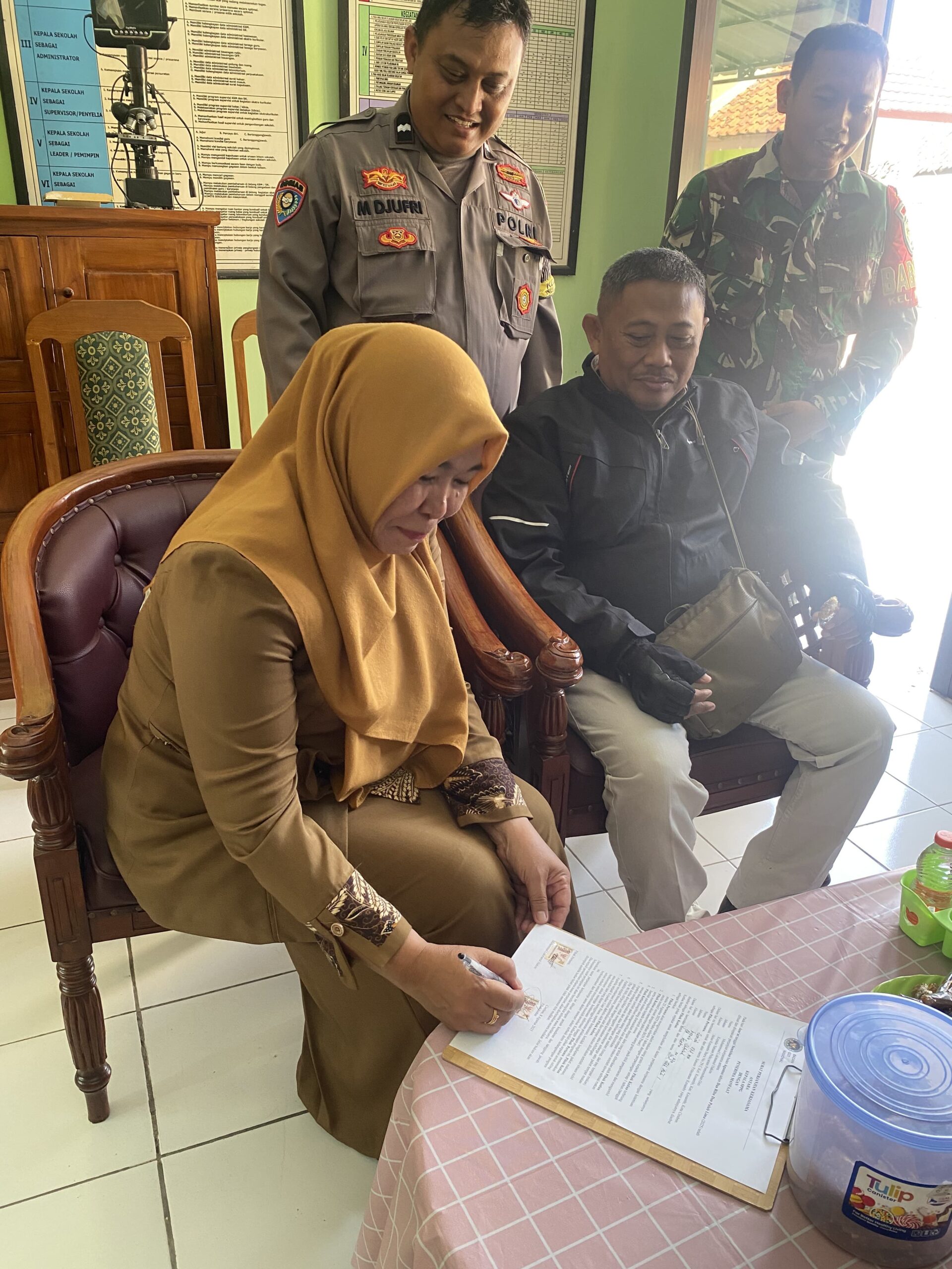 “Kami hadir untuk memastikan proses penandatanganan kesepakatan ini berjalan lancar dan sesuai aturan. Harapannya, kerja sama ini membawa manfaat nyata bagi siswa, guru, dan masyarakat sekitar,” ujar Babinsa Kelurahan Kesambi.