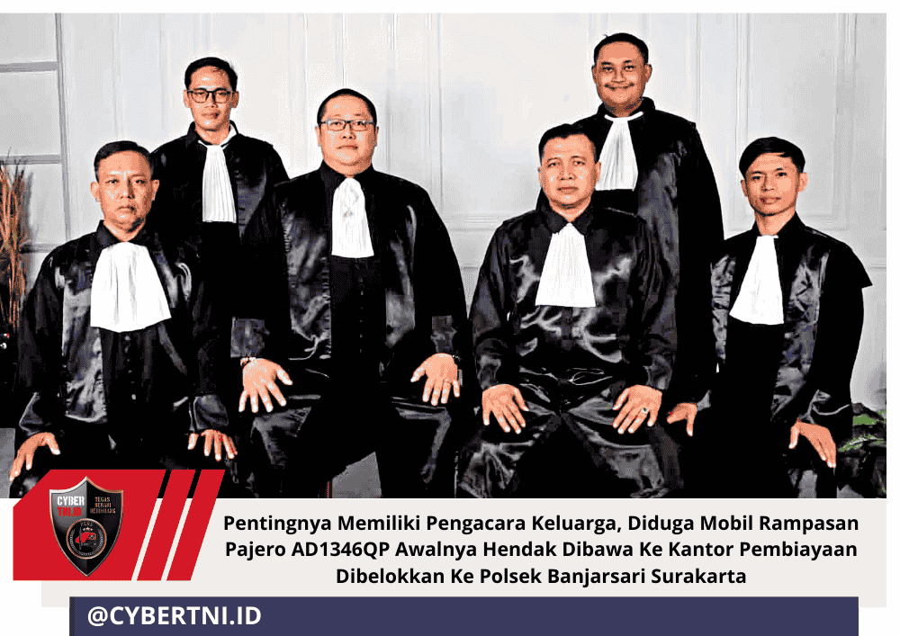 CyberTNI.id | Surabaya, Selasa 23 Desember 2025 — Awalnya unit mobil dirampas di jalanan dan diduga hendak di bawa ke kantor pembiayaan yang mengutus, tapi karena Pengacara Keluarga langsung bertindak menyampaikan lewat telpon kepada para terduga oknum perampas bahwa mereka semua akan diproses hukum. Maka akhirnya oknum diduga takut maka tidak jadi membawa unit diduga hasil rampasan ke kantor yang mengutus tapi dibelokkan ke polsek Banjarsari Surakarta, Jawa Tengah.