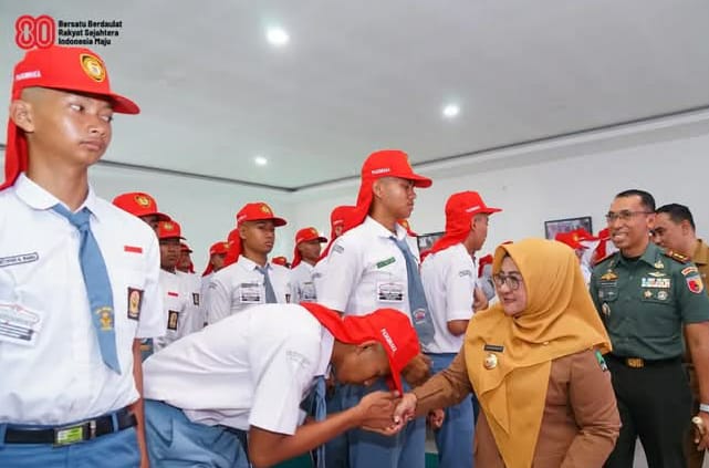 CyberTNI.id |MAGETAN -Bupati Magetan, Hj. Nanik Endang Rusminiarti, M.Pd menyerahkan 72 personil calon Pasukan Pengibar Bendera (Paskibra) Persiapan HUT ke – 80 Kemerdekaan Republik Indonesia Tahun 2025 kepada Pelatih bertempat di Aula Kodim 0804, Selasa (5/8/2025). Tujuh puluh dua personil tersebut terdiri dari 36 orang peserta laki-laki dan 36 peserta perempuan dari hasil seleksi di setiap sekolah SMK/SMA/MAN di wilayah Kabupaten Magetan.