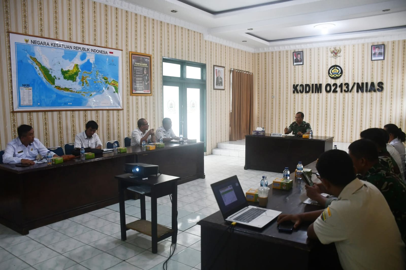 CyberTNI.id | Gunungsitoli, Rabu 10 Desember 2025 — Dandim 0213/Nias Letkol Inf Sampe T Butar Butar, Melaksanakan Rapat bersama Kepala Dinas Koperasi Kab/Kota di Kep- Nias, bertempat di ruang data Makodim 0213/Nias. Rabu, 10/12/25
