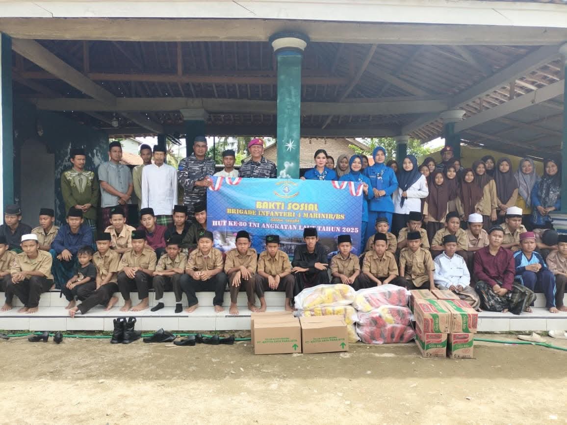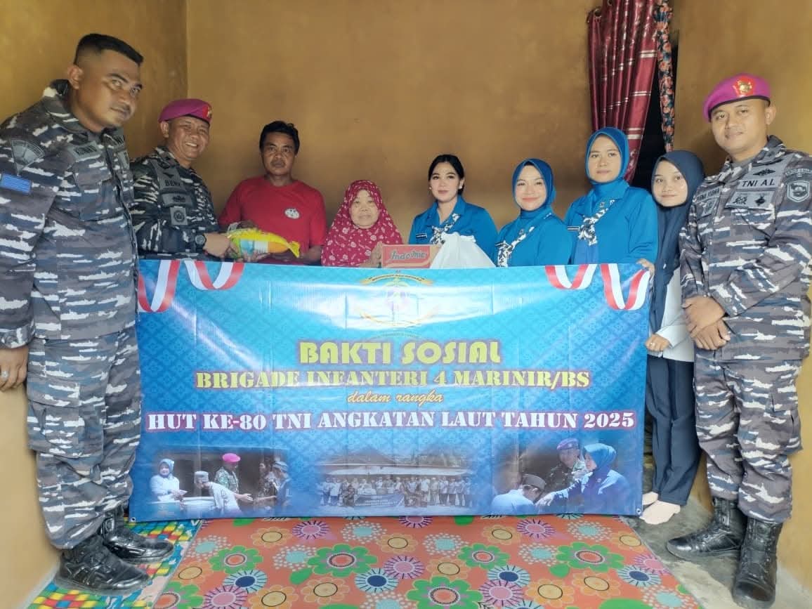 CyberTNI.id | Lampung , Jumat 12 September 2025 —TNI-AL, Korps Marinir, Brigif 4 Mar/BS (Pesawaran) Dalam rangka memperingati Hari Ulang Tahun ke-80 Tentara Nasional Indonesia Angkatan Laut (TNI AL), Komandan Brigade Infanteri (Danbrigif) 4 Marinir/BS Kolonel Marinir Supriadi Tarigan, S.I.P., M.M., didampingi Ketua Cabang 7 PG Kormar Ny. Yayuk Supriadi Tarigan beserta jajarannya melaksanakan kegiatan bakti sosial (baksos) dengan mengunjungi beberapa tempat di wilayah sekitar. Jum’at (12/09/2025).