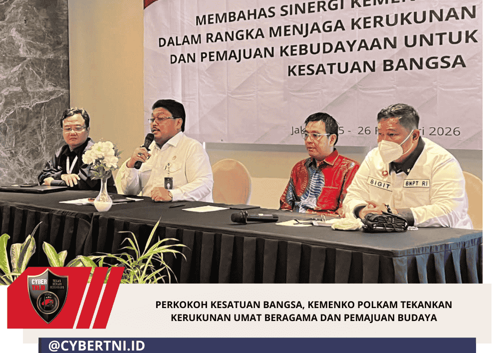CyberTNI.id | Polkam, Jakarta – Kementerian Koordinator Bidang Politik dan Keamanan (Kemenko Polkam) mendorong sinergitas antar Kementerian dan Lembaga dengan menyelenggarakan rapat koordinasi menjaga kerukunan umat beragama dan pemajuan kebudayaan di Jakarta, Rabu (25/2/2026).