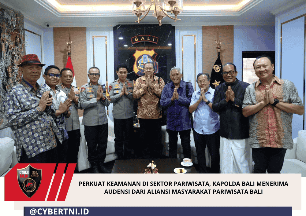 CyberTNI.id | BALI — Didampingi Pejabat Utama (PJU) Polda Bali, Kepala Kepolisian Daerah Bali, Irjen. Pol. Daniel Adityajaya, S.H., S.I.K., M.Si. Menerima kunjungan dari Aliansi Masyarakat Pariwisata Bali yang berlangsung di Ruang Tamu Kapolda Bali, Jumat (13/3/2026).