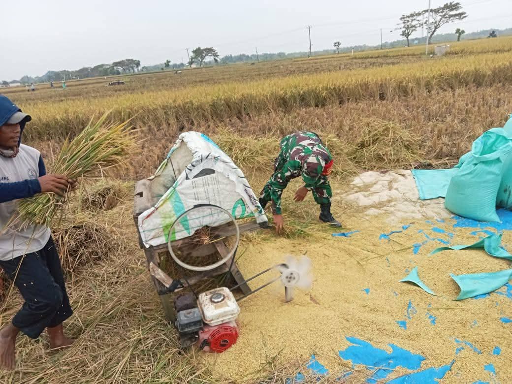 CyberTNI.id | BLORA,Selasa 30 September 2025 – Dalam rangka mendukung program pemerintah di bidang ketahanan pangan, jajaran Babinsa Kodim 0721/Blora terus aktif mendampingi masyarakat dalam kegiatan pertanian. Salah satunya dilakukan oleh Serka Jari, Babinsa Koramil 10/Kradenan, yang turun langsung membantu warga binaan memanen padi di lahan milik Bapak Darmono, warga Dukuh Wates, Desa Sumber, Kecamatan Kradenan, Kabupaten Blora, Selasa (30/9/2025).