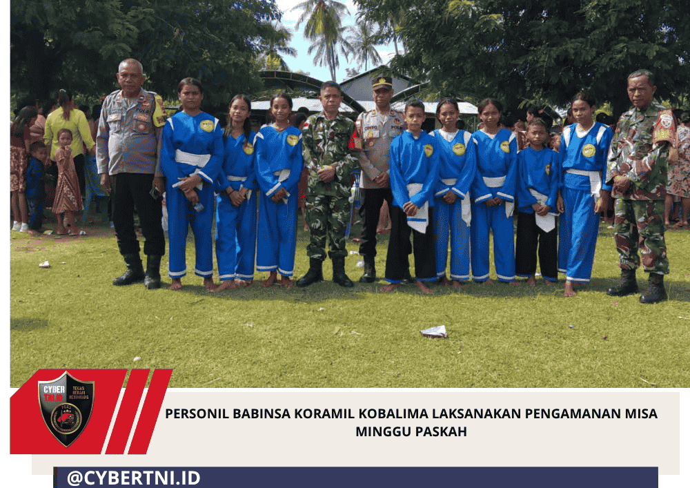 CyberTNI.id | BELU — Para Personil Babinsa Koramil 1605-05/Kobalima melaksanakan kegiatan pengamanan Perayaan Misa Minggu Paskah di sejumlah Gereja yang berada di wilayah Kecamatan Kobalima, Kabupaten Malaka, Minggu (5/4/2026).