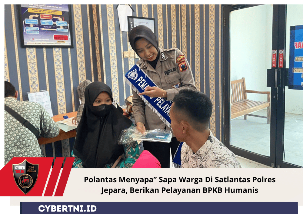 CyberTNI.id | Jepara, Selasa 28 Oktober 2025 – Program ”Polantas Menyapa” dari unit Registrasi dan Identifikasi (Regident) Satlantas Polres Jepara hadir menyapa langsung masyarakat yang tengah mengurus administrasi Bukti Pemilikan Kendaraan Bermotor (BPKB) di Satlantas Polres Jepara Jl. K. S. Tubun No.2, Demaan VIII, Demaan, Selasa, 28 Oktober 2025.