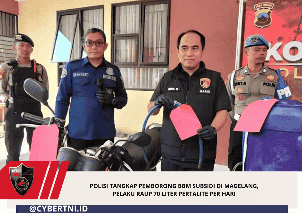 CyberTNI.id| MAGELANG,Jumat (17/4/2026) —Satuan Reskrim Polres Magelang Kota menangkap pengendara sepeda motor Suzuki Thunder yang diduga memborong bahan bakar minyak (BBM) subsidi dari sejumlah pom bensin atau SPBU untuk dijual kembali. Polisi menyita sepeda motor serta beberapa jeriken yang berisi BBM subsidi.
