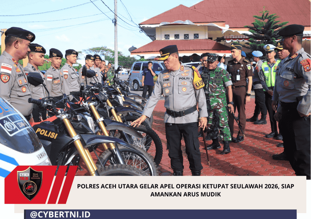 CyberTNI.id | LHOKSUKON – Polres Aceh Utara melaksanakan Apel Gelar Pasukan Operasi Ketupat Seulawah 2026 yang dipimpin langsung oleh Kapolres Aceh Utara AKBP Trie Aprianto, S.H., M.H., di halaman Mapolres setempat, Kamis sore (12/3/2026).