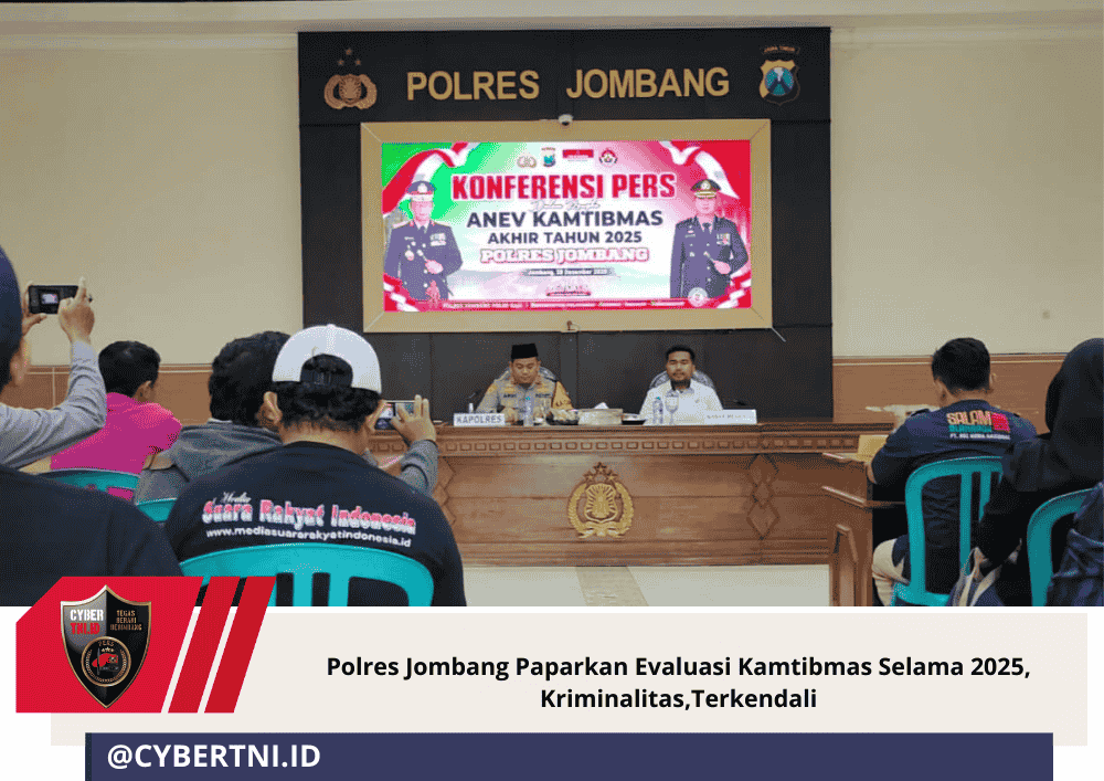 CyberTNI.id | Jombang, Senin 29 Desember 2025 — Jombang menggelar konferensi pers Analisa dan Evaluasi (Anev) Keamanan dan Ketertiban Masyarakat (Kamtibmas) akhir tahun 2025, Senin (29/12/2025). Kegiatan yang berlangsung di Gedung Graha Bhakti Bhayangkara (GBB) Mapolres Jombang ini menjadi wujud transparansi kinerja kepolisian kepada publik selama satu tahun terakhir.