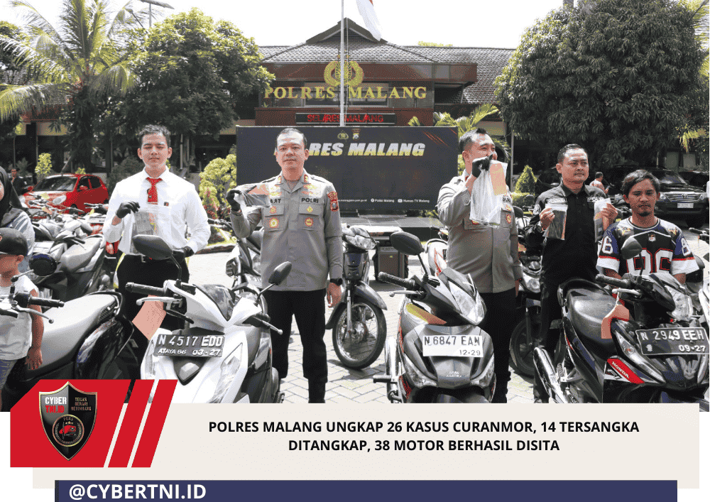 CyberTNI.id | MALANG – Kepolisian Resor Malang mengungkap puluhan kasus pencurian kendaraan bermotor (curanmor) yang terjadi di wilayah Kabupaten Malang. Pengungkapan tersebut disampaikan dalam konferensi pers yang dipimpin Kapolres Malang AKBP Muhammad Taat Resdianto di Mapolres Malang, Kamis (12/3/2026).