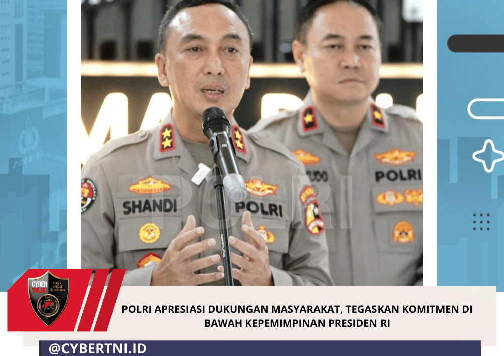CyberTNI.id | Jakarta,31 Januari 2026 — Kepolisian Negara Republik Indonesia (Polri) menyampaikan apresiasi dan rasa terima kasih kepada seluruh elemen masyarakat atas dukungan terhadap posisi Polri yang tetap berada di bawah Presiden Republik Indonesia. Dukungan tersebut dinilai sebagai amanah sekaligus kepercayaan publik yang harus dijaga dengan kinerja profesional, transparan, dan berorientasi pada pelayanan masyarakat.