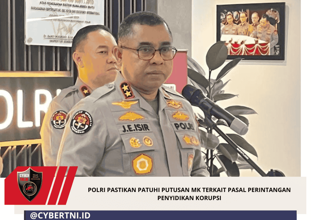 CyberTNI.id | Jakarta – Polri menegaskan komitmennya untuk menaati putusan Mahkamah Konstitusi (MK) terkait perubahan Pasal 21 UU Nomor 31 Tahun 1999 tentang Pemberantasan Tindak Pidana Korupsi (UU Tipikor). Pasal yang mengatur tentang perintangan penyidikan (obstruction of justice) ini sebelumnya digugat karena dinilai sebagai “pasal karet”.