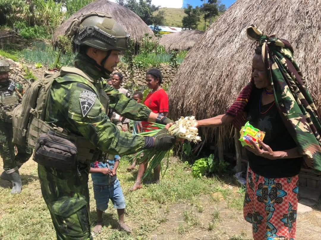 CyberTNI.id | Yahukimo Papua, Jumat 26 September 2025 – Personel Satgas Mobile Yonif 644/Walet Sakti Pos Mugi melaksanakan kegiatan komsos, membantu masayarakat bercocok tanam dan pelayanan kesehatan kepada masyarakat di Kampung Ugem, Distrik Mugi, Kabupaten Yahukimo, Papua Pegunungan. Kegiatan ini menjadi momen kebersamaan sekaligus bentuk nyata kepedulian TNI terhadap keamanan dan pelayanan masyarakat setempat, Jumat (26/09/2025).
