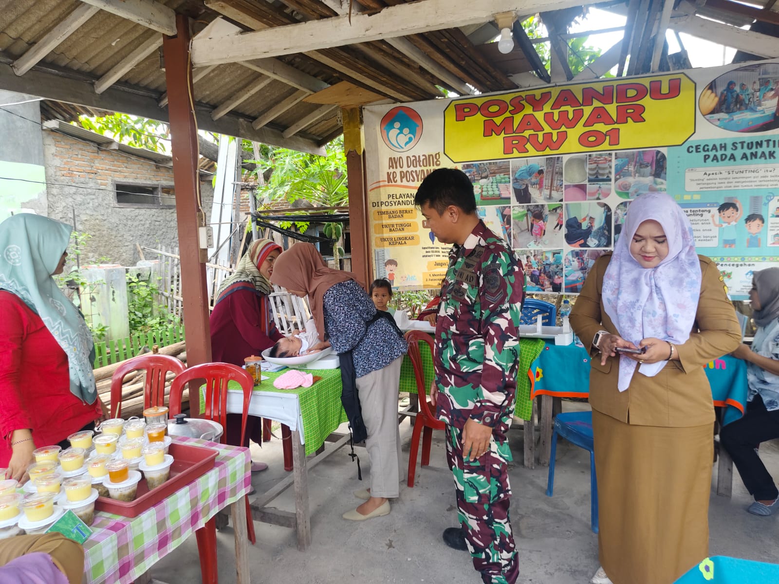 Sejak pagi hari, antusiasme warga sudah terasa. Para ibu tampak berdatangan sambil menggandeng atau menggendong anak-anak balita mereka. Tawa kecil, suara tangisan ringan, dan canda ibu-ibu yang saling berbagi cerita mengisi udara hangat di lokasi Posyandu. Kegiatan ini bukan sekadar kewajiban, melainkan telah menjadi kebiasaan sehat yang melekat dalam kehidupan masyarakat setempat.