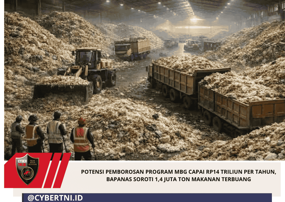 CyberTNI.id|JAKARTA,Senin(6/4/2026) — Badan Pangan Nasional (Bapanas) menyoroti potensi pemborosan dalam pelaksanaan program Makan Bergizi Gratis (MBG) yang diperkirakan mencapai 1,4 juta ton makanan terbuang setiap tahun. Estimasi tersebut memunculkan kekhawatiran terkait efektivitas distribusi serta efisiensi penggunaan anggaran negara dalam program prioritas tersebut.