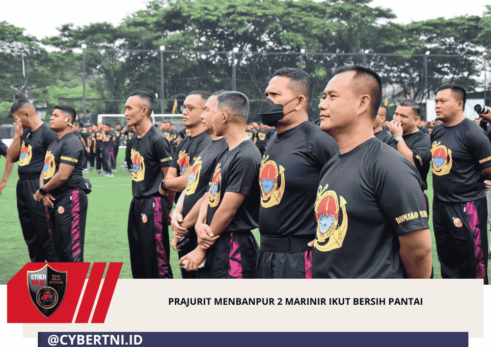 CyberTNI.id | Surabaya – Komandan Resimen Bantuan Tempur 2 Marinir (Danmenbanpur 2 Mar) Kolonel Marinir Rizal Ikqwan Nusofa, S.H., M.Tr. Hanla bersama prajuritnya mengikuti kegiatan olahraga bersama dan aksi bersih pantai dalam rangka Hari Ulang Tahun (HUT) ke-25 Pasmar 2 tahun 2026. Kegiatan tersebut digelar di Bay Arena Sport Center, Kenjeran, Surabaya, Jumat (27/03/2026).