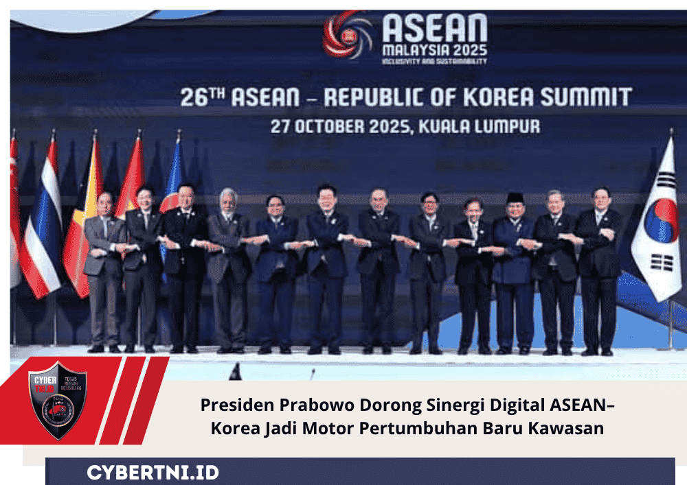 CyberTNI.id | Kuala Lumpur, Senin 27 Oktober 2025 — Presiden RI Prabowo Subianto menghadiri Konferensi Tingkat Tinggi (KTT) ke-26 ASEAN-Republik Korea, Senin (27/10/2025), di Kuala Lumpur Convention Centre (KLCC), Malaysia. Dalam pernyataannya, Presiden Prabowo menegaskan pentingnya penguatan kemitraan ASEAN dengan Republik Korea (ROK) dalam menghadapi tantangan global yang semakin kompleks.