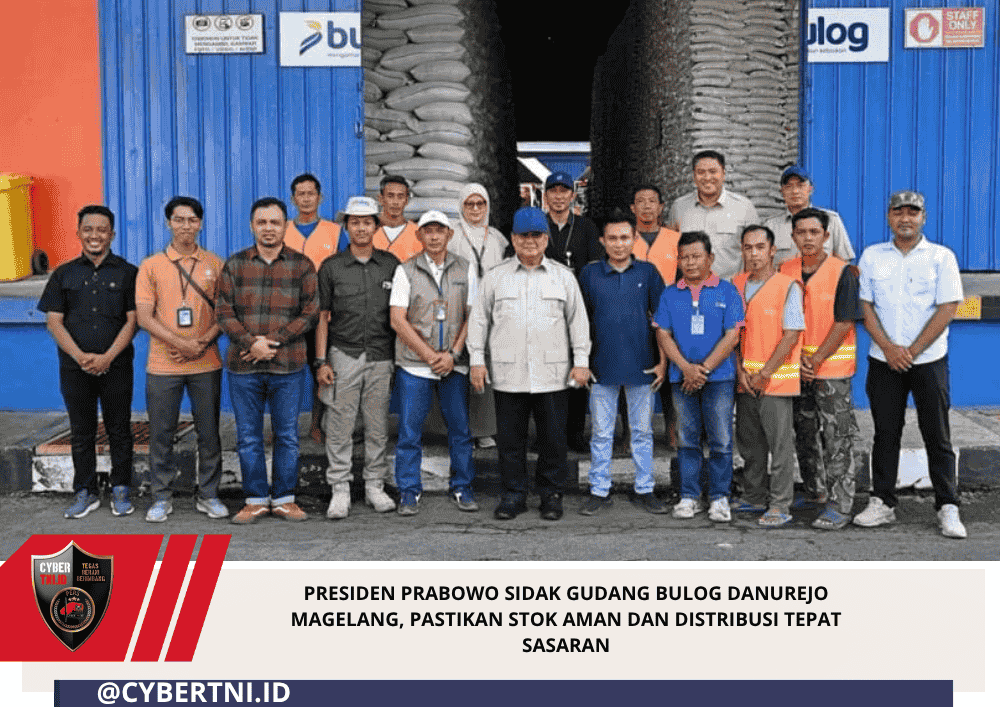 CyberTNI.id | Magelang — Presiden Prabowo Subianto melakukan sidak langsung ke Kompleks Gudang Bulog Danurejo di Kabupaten Magelang, Jawa Tengah, Sabtu (18/04/2026), untuk memastikan secara langsung cadangan pangan, khususnya beras, berada pada kondisi aman dan siap didistribusikan kepada masyarakat.