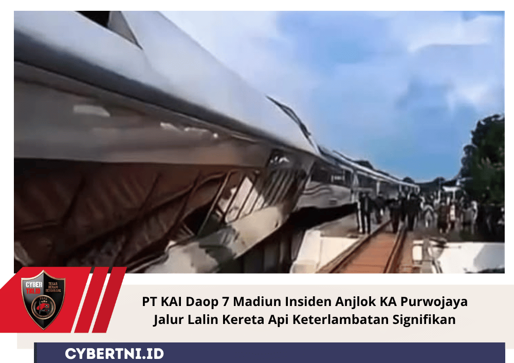 CyberTNI.id |MADIUN,Minggu (26/10/2025) — PT Kereta Api Indonesia Daerah Operasi 7 Madiun (KAI Daop 7) mengonfirmasi bahwa sejumlah perjalanan kereta api di wilayahnya terdampak insiden anjloknya KA Purwojaya (KA 58F) di emplasemen Stasiun Kedunggedeh pada Sabtu sore (25/10/2025).