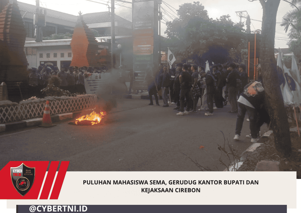 CyberTNI.id | CIREBON, 28-04-2026 – Puluhan Mahasiswa yang mengatasnamakan Serikat Mahasiswa Cirebon Indonesia (SEMA), mengadakan aksi demontrasi di depan Gedung Kantor Bupati Cirebon, Jawa Barat, dan Kantor Kejaksaan Negeri Cirebon, sesuai Pernyataan Sikap pemberitahuan Aksi nomor: 001/S-Pemb/SEMA.CRB/IV/2026