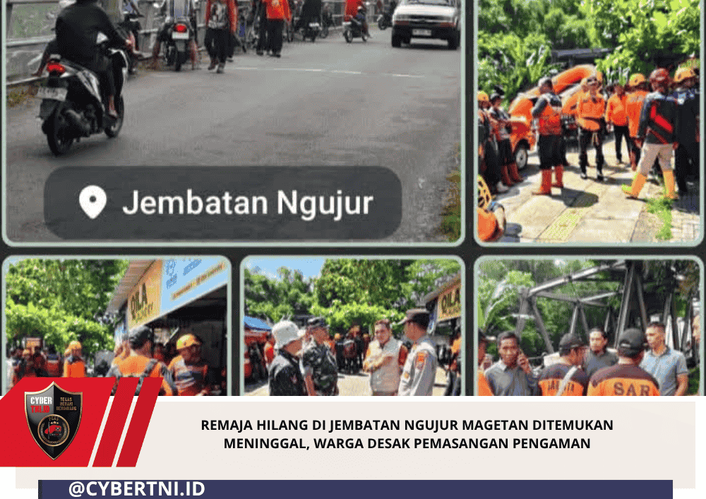 CyberTNI.id|MAGETAN,Kamis (23/4/2026) —Pencarian remaja yang dilaporkan hilang di sekitar Jembatan Ngujur berakhir. Tim SAR gabungan menemukan korban davit dalam kondisi meninggal dunia.