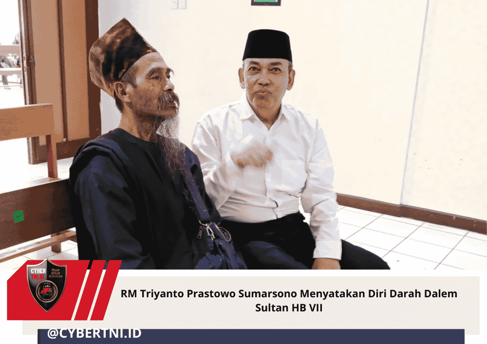 CyberTNI.id |YOGYAKARTA ,Selasa (6/1/2025) — RM Triyanto Prastowo Sumarsono yang menyatakan diri sebagai keturunan Darah Dalem Sri Sultan Hamengku Buwono VII menegaskan sikap dan pandangannya terkait paugeran Kasultanan Mataram Islam Ngayogyakarta Hadiningrat serta pengelolaan tanah kesultanan.