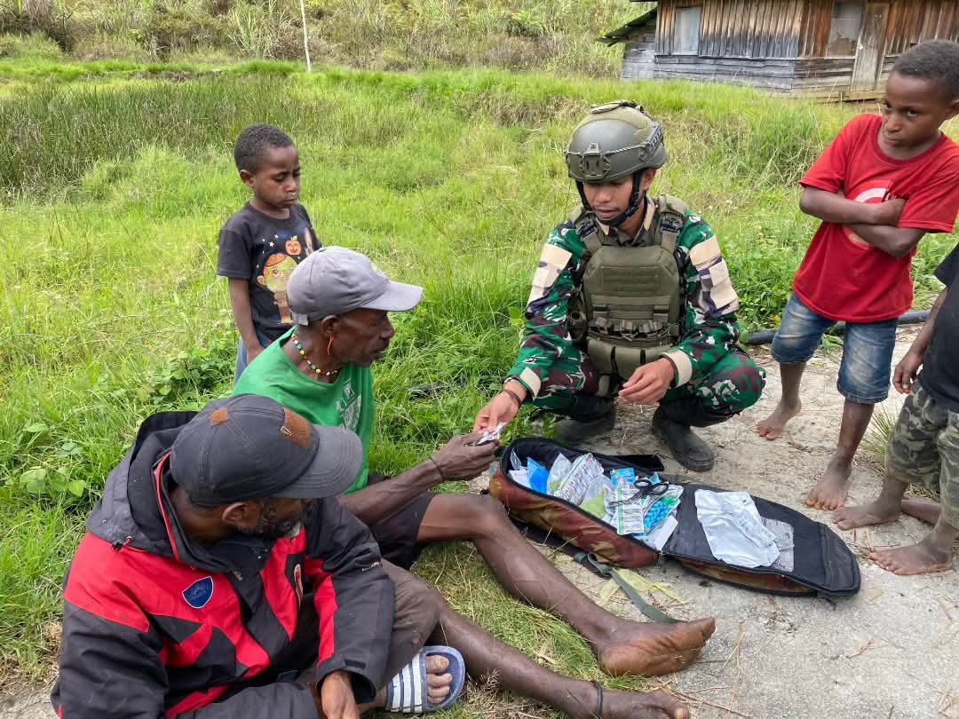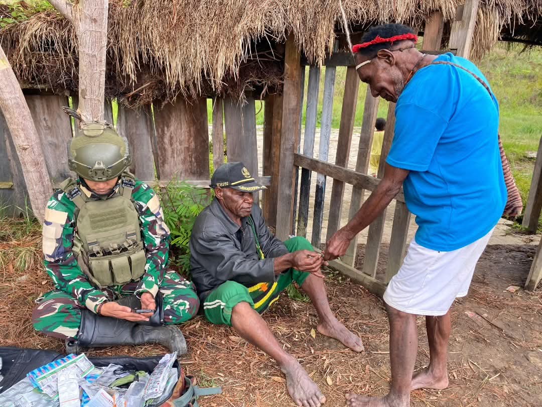 CyberTNI.id | Wamena, Minggu 28 September 2025 — Di balik dinginnya kabut Walaik, pagi hari yang sederhana di Kampung Walaik menjadi saksi sebuah pengabdian. Pos Walaik Satgas Mobile Yonif 644/Walet Sakti hadir membawa semangat kemanusiaan, melaksanakan kegiatan Binter terbatas berupa pelayanan kesehatan gratis bagi warga. Senyum bahagia di wajah masyarakat, ketika satu per satu mereka menerima sentuhan kepedulian dari prajurit. Minggu, (28/09/2025).