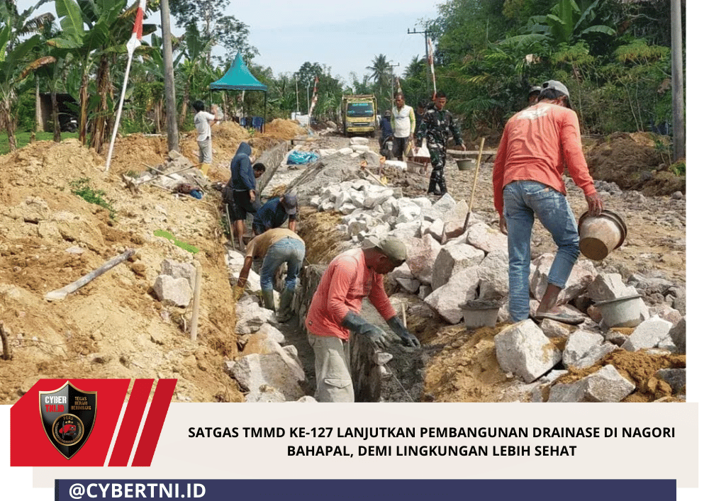 CyberTNI.id | Simalungun, 3 Maret 2026 — Upaya meningkatkan kualitas infrastruktur desa terus digencarkan. Pada Selasa (03/03/2026), personel Yon TP 901/Suhul Gading Brigif 36/Harajaon Marpitu yang tergabung dalam Satgas TMMD ke-127 Kodim 0207/Simalungun kembali melanjutkan pekerjaan pembuatan saluran drainase di Nagori Bahapal, Kecamatan Raya, Kabupaten Simalungun.