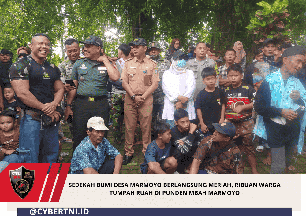 CyberTNI.id | JOMBANG — Tradisi Sedekah Bumi kembali digelar dengan penuh khidmat dan kemeriahan oleh masyarakat Desa Marmoyo, Kecamatan Kabuh, Kabupaten Jombang, pada Senin (13/04/2026). Kegiatan budaya tahunan ini menjadi momentum penting sebagai wujud rasa syukur masyarakat atas hasil bumi sekaligus mempererat kebersamaan antar warga.