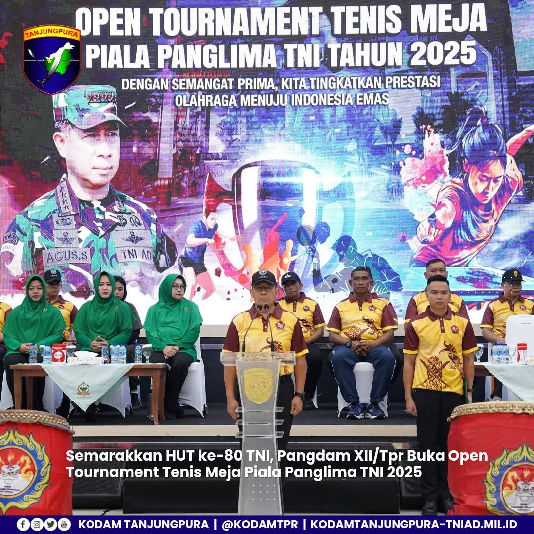 Semarakkan HUT Ke-80 TNI, Pangdam XII/Tpr Buka Open Tournament Tenis Meja Piala Panglima TNI 2025
