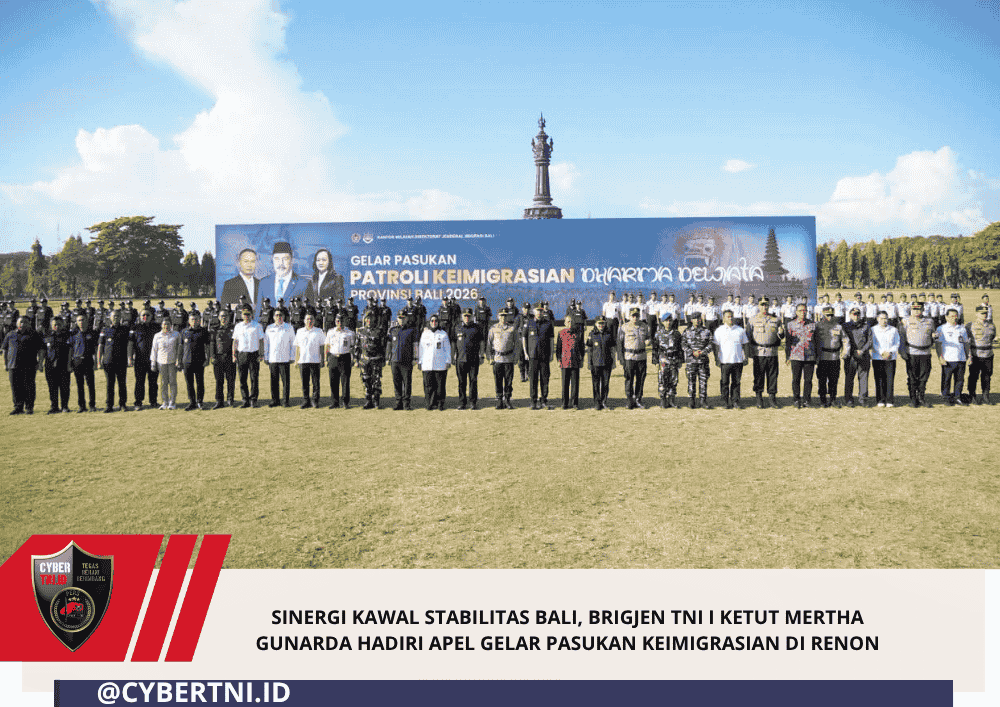 CyberTNI.id | Denpasar – Kapoksahli Pangdam IX/Udayana, Brigjen TNI I Ketut Mertha Gunarda, menghadiri Apel Gelar Pasukan Patroli Keimigrasian Provinsi Bali yang diselenggarakan di Lapangan Puputan Margarana Niti Mandala Renon, Denpasar, pada Rabu (15/42026).
