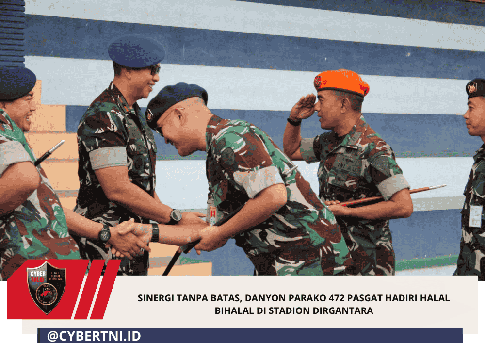 CyberTNI.id | Malang – Yon Parako 472 Pasgat Nanggala. Komandan Batalyon Para Komando 472 Pasgat Letkol Pas Riwan Sugiyono, M.Han., beserta seluruh prajurit menghadiri kegiatan halal bihalal Keluarga Besar Lanud Abdulrachman Saleh yang dilaksanakan di Stadion Dirgantara Lanud Abdulrachman Saleh, Rabu (25/03/2026).