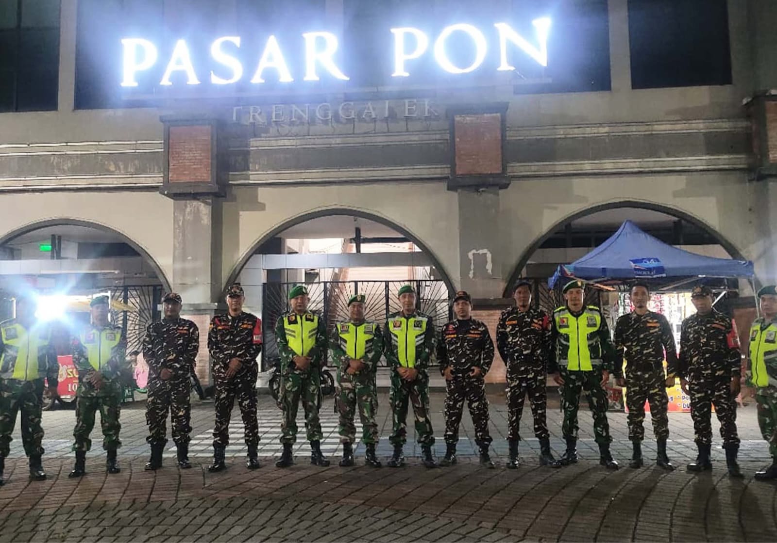 Usai apel, kegiatan dilanjutkan dengan patroli gabungan menyusuri titik-titik keramaian, mulai dari terminal bus Trenggalek hingga Pasar Pon. Kehadiran personel TNI dan Banser memberi rasa aman bagi warga, pedagang, maupun penumpang yang masih beraktivitas pada malam hari.