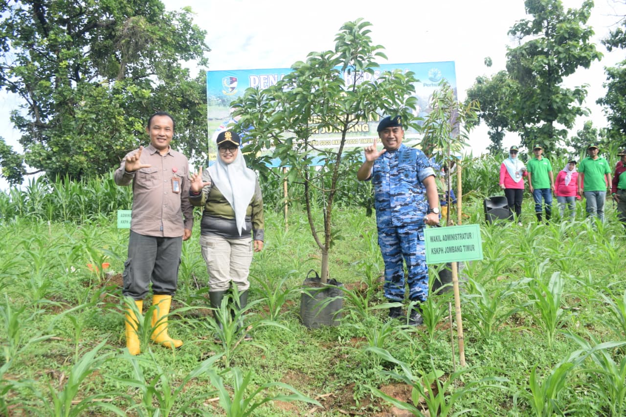 “sedangkan untuk bibit alpokat dan durian ditanam di Markas Satrad 405 sebagai bentuk komitmen dan sinergitas Satrad 405 bersama Perhutani KPH Jombang”.