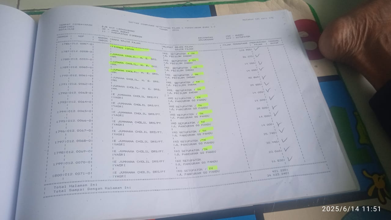 CyberTNI.id | Cirebon, 9 Agustus 2025 — Kasus dugaan penyerobotan dan penguasaan ilegal atas tanah negara di Desa Setu Patok, Kecamatan Mundu, Kabupaten Cirebon, kembali mencuat. PT YASRI, perusahaan yang dipimpin oleh Haji Jumhana Cholil, disebut telah membangun kawasan pariwisata di atas tanah yang statusnya masih diperdebatkan, tanpa melalui prosedur hukum yang sah.
