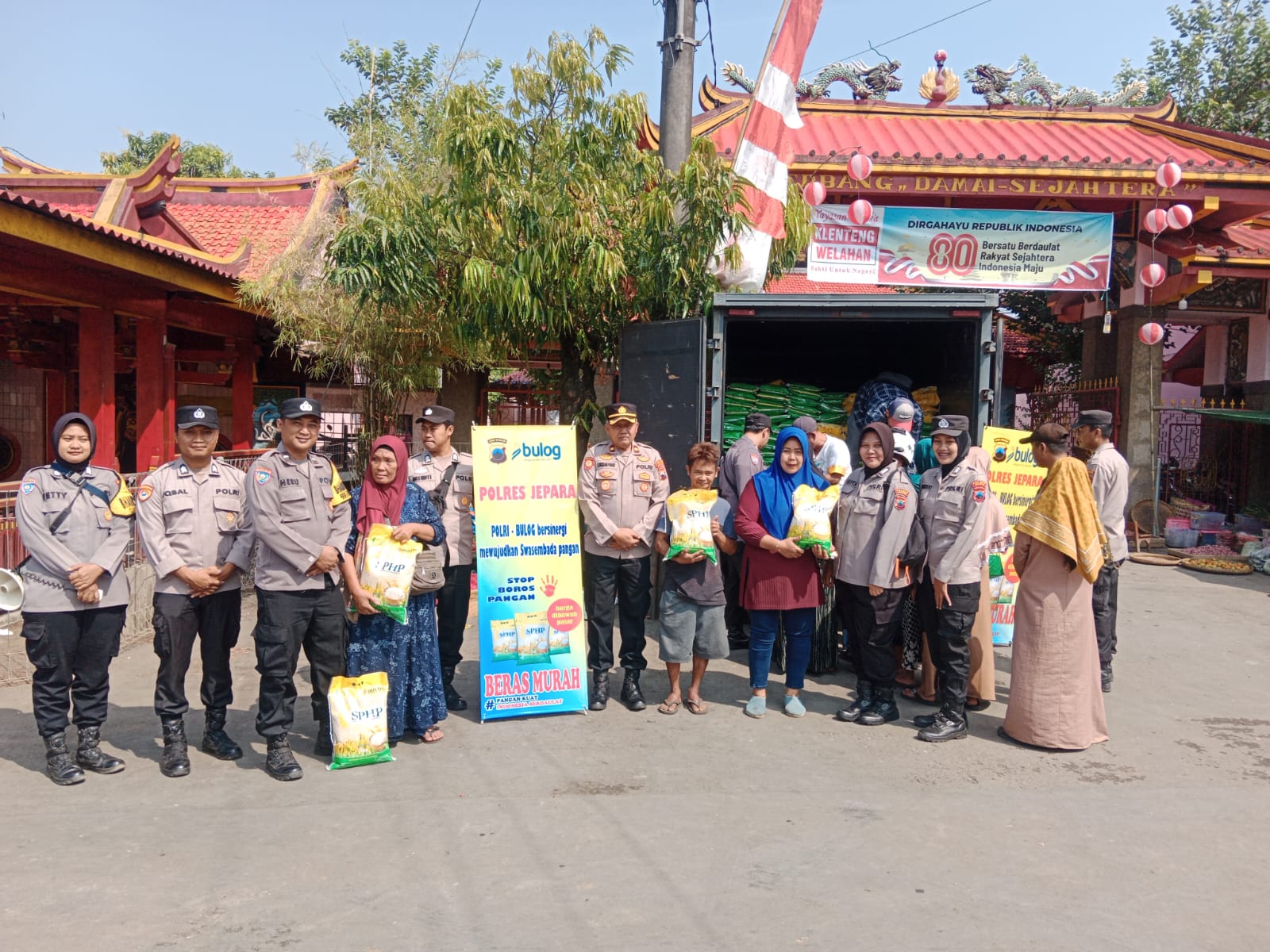 CyberTNI.id | Jepara, Kamis 7 Agustus 2025 – Kepolisian Resor (Polres) Jepara, Polda Jawa Tengah, bekerja sama dengan Perum Bulog menggelar Gerakan Pangan Murah (GPM) pendistribusian beras SPHP (Stabilisasi Pasokan dan Harga Pangan) sebagai bentuk kepedulian terhadap stabilitas harga dan daya beli masyarakat, pada Kamis (7/8/2025).
