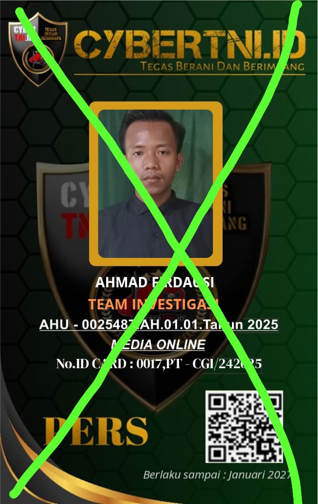 CyberTNI.id|JAKARTA,Senin 22 September 2025 – Manajemen Media CyberTNI.ID dengan ini secara resmi mengumumkan bahwa nama yang sebelumnya tercantum sebagai anggota/kontributor Media CyberTNI.ID telah diberhentikan sepenuhnya dari seluruh aktivitas organisasi maupun institusi Media CyberTNI.ID. Keputusan ini diambil melalui rapat internal redaksi dan manajemen setelah melalui pertimbangan yang mendalam.