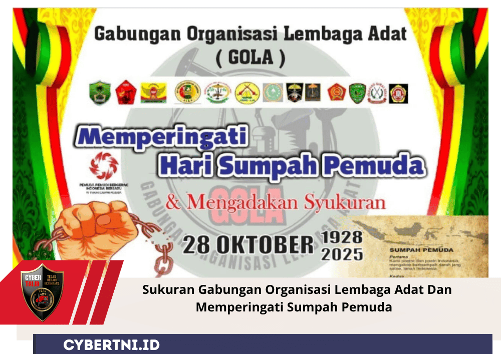CyberTNI.id | Duri, Selasa 28 Oktober 2025 — Dalam rangka memperingati Hari Sumpah Pemuda yang jatuh pada tanggal 28 Oktober, GOLA (Gabungan Organisasi Lembaga Adat) menggelar kegiatan peringatan sekaligus acara syukuran yang berlangsung dengan khidmat dan penuh kebersamaan di Gedung Desprindak Kabupaten Bengkalis. Acara ini menjadi momentum penting untuk mempererat silaturahmi antarorganisasi adat, tokoh masyarakat, serta pemerintah daerah yang memiliki visi bersama dalam menjaga nilai-nilai budaya dan semangat kebangsaan.