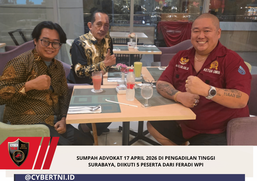 CyberTNI.id | Surabaya — Ketua Umum FERADI WPI menginap di Hotel Midtown Residence Surabaya untuk menghadiri undangan dari Ketua Pengadilan Tinggi Surabaya dimana esok hari Jumat 17 April 2026 akan dilaksanakan penyumpahan advokat dengan total peserta 34 orang dari 9 Organisasi Advokat