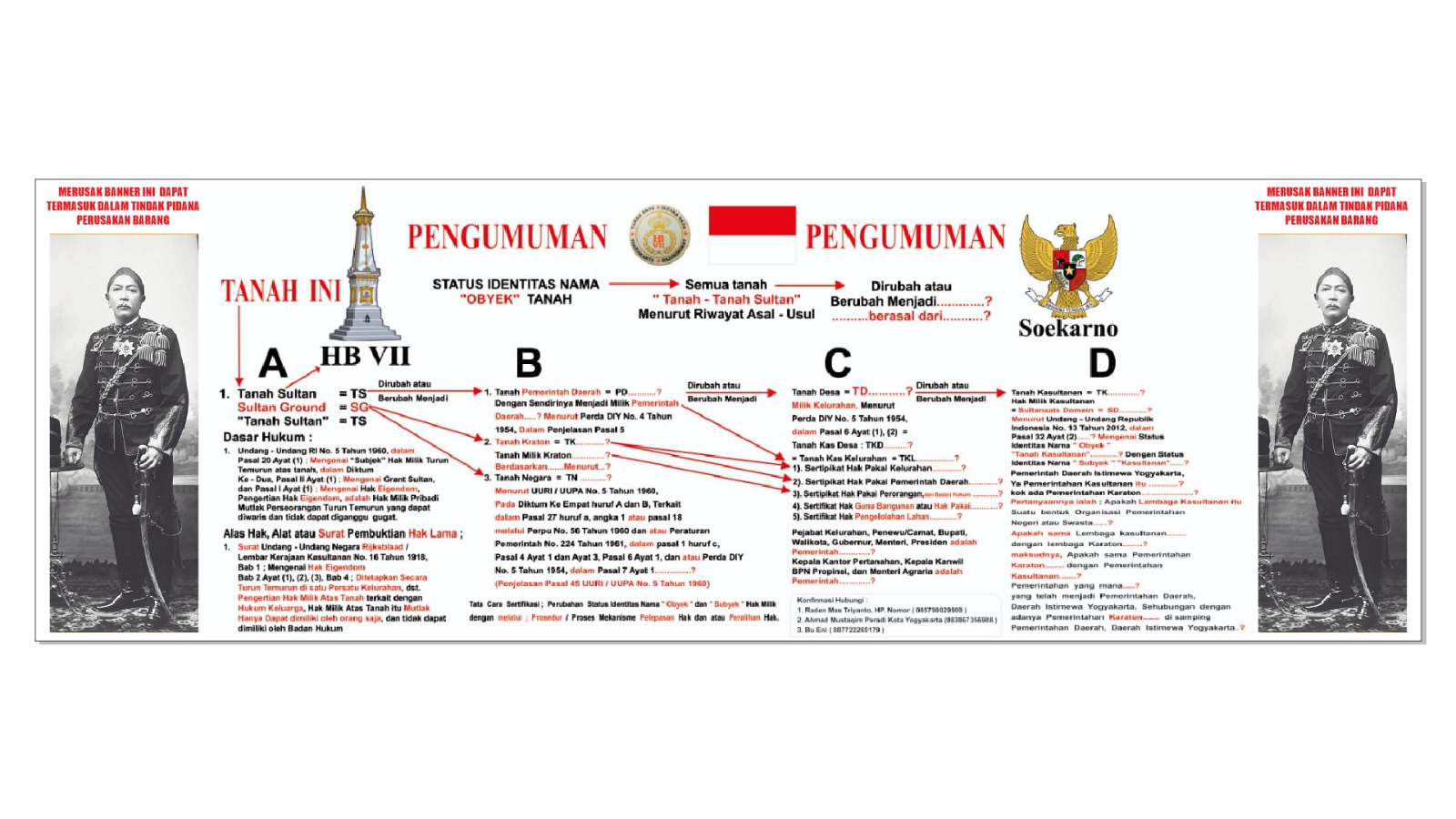 - Surat Keputusan Menteri Dalam Negeri No. SK26/DDA/ 1970 , Tanggal 14 Mei 1970 , Tentang Penegasan Konversi dan Pendaftaran dapat dimiliki oleh Badan Hukum . dengan Catatan ; sesama Ahli waris yang terbukti telah menggelapkan Hak Ahliwaris Lainnya Haknya Hilang, Hal Mana Berlaku tidak hanya utuk Sultan sendiri , tapi juga untuk semua Ahli warisnya . Perkara Permasalahan dimaksud Tersebut diatas Bukan Perkara Sengketa Waris , tapi Perkara Penyerobotan Tanah Hak Milik Pribadi Para Ahliwaris Turun Temurun Sultan Hamengku Buwono VII yang diserobot oleh Oknum Gubernur DIY selaku Sultan Hamengku Buwono X yang mengatasnamakan Pemerintah Daerah Daerah Istimewa Yogyakarta ataupun dengan mengatasnamakan Kasultanan Ngayogyokarto Hadiningrat berdasarkan oleh Pemerintah ditetapkan Badan Badan Hukum yang dapat mempunyai Hak Milik atas Tanah dalam Undang Undang Republik Indonesia / UUPA No. 5 Tahun 1960 Pada Pasal 21 ayat ( 2 ) dan atau Berdasarkan Undang-Undang RINol3 Tahun 2012 Pasal 32 ayat ( 2 ) yang mengatur Tanah Kasultanan “ Bukan Mengatur Tanah Sultan” pada Obyek Tanahnya Keliru atau Salah atau Status Identitas nama Tanahnya keliru atau salah , karena yang tercatat dibuku Register Tanah di Desa / Kelurahan yaitu Status Obyek Persil Tanah SG , yaitu Sultan Ground adalah Tanah Sultan , Bukan Tanah Kasultanan