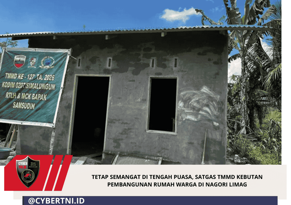 CyberTNI.id | Simalungun – Semangat pengabdian kepada masyarakat kembali ditunjukkan oleh para prajurit TNI yang tergabung dalam Satgas TMMD ke-127 Kodim 0207/Simalungun. Meski tengah menjalankan ibadah puasa, pekerjaan pembangunan Rumah Tidak Layak Huni (RTLH) milik warga terus dikebut demi membantu masyarakat mendapatkan tempat tinggal yang lebih layak.