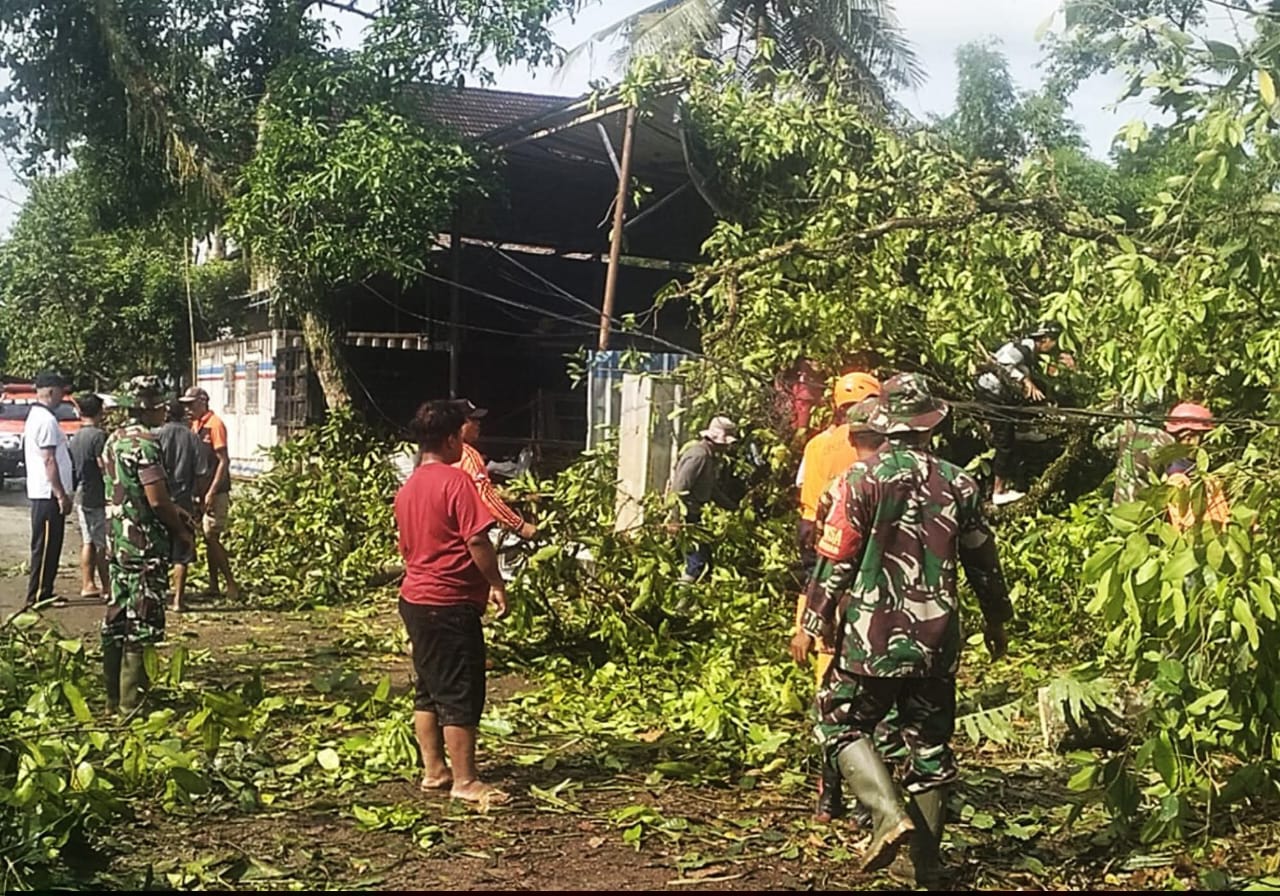 Sejumlah warga juga turut bergotong royong membersihkan ranting dan serpihan kayu yang berserakan. Sinergi antara aparat dan masyarakat terlihat jelas dalam proses penanganan bencana ini.