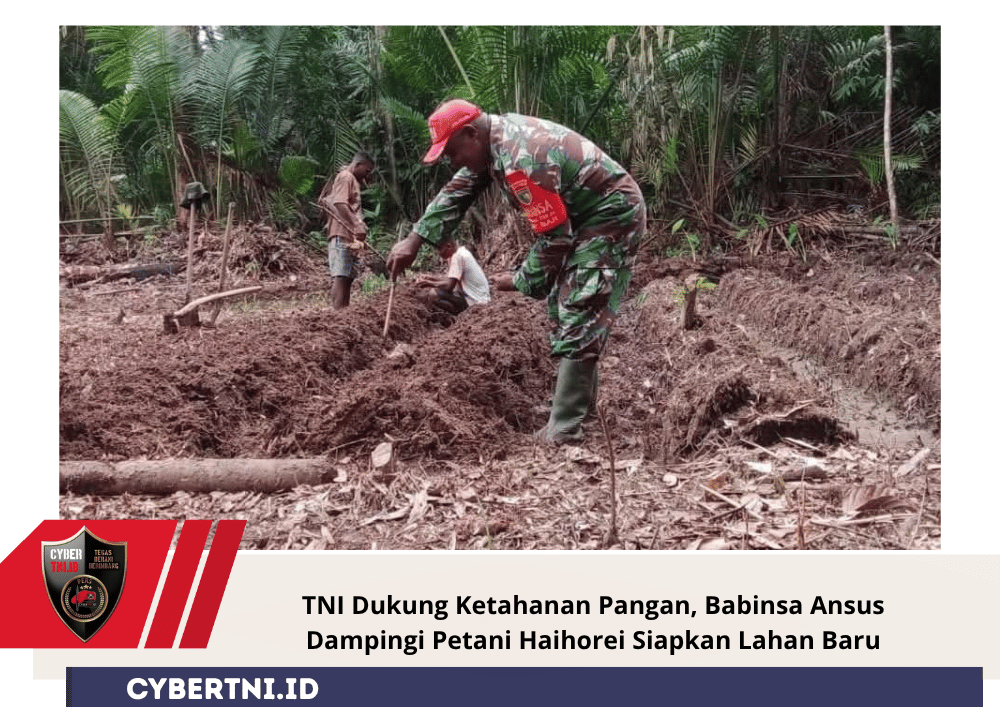 CyberTNI.id | Yapen,Minggu 26 Oktober 2025 — Dalam semangat kebersamaan dan kepedulian terhadap kesejahteraan masyarakat, Babinsa Koramil 1709-04/Ansus, Serka Jekzon Horota, turun langsung ke lapangan membantu warga Kelompok Tani Mareni menyiapkan lahan tanam baru di Kampung Haihorei, Distrik Wonawa, Kabupaten Kepulauan Yapen, Minggu (26/10/2025).