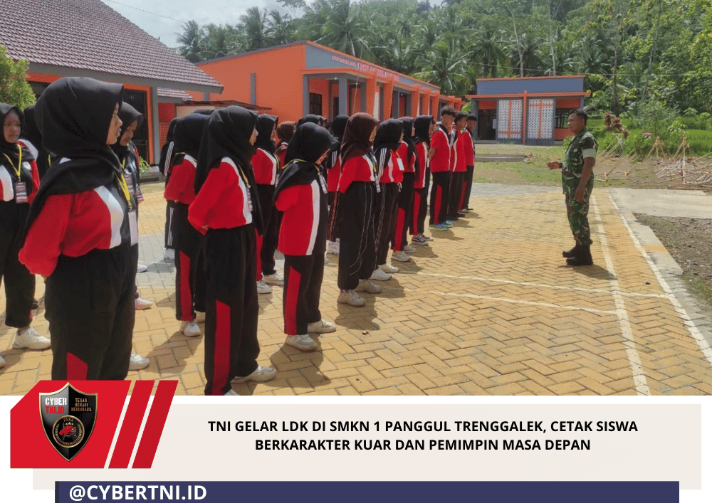CyberTNI.id | Trenggalek – Peran Tentara Nasional Indonesia (TNI) melalui satuan teritorial kewilayahan kembali menunjukkan kontribusi nyata dalam pembinaan generasi muda. Hal tersebut terlihat dalam kegiatan Latihan Dasar Kepemimpinan (LDK) yang digelar Koramil 0806-11/Panggul bagi pelajar SMKN 1 Panggul, Kecamatan Panggul, Kabupaten Trenggalek, Sabtu (7/2/2026). Kegiatan ini menjadi bagian dari komitmen TNI dalam membangun karakter calon pemimpin masa depan sejak usia sekolah.