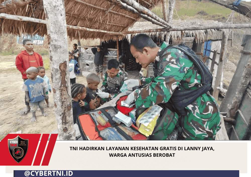CyberTNI.id | Lanny Jaya — Wujud kepedulian terhadapq kesehatan masyarakat di wilayah Papua Pegunungan kembali ditunjukkan Satgas Pamtas RI–PNG Kewilayahan Yonif 511/DY Pos Popome. Pada Sabtu (18/4/2026), mereka menggelar layanan kesehatan gratis bagi warga Kampung Popome, Distrik Mokoni, Kabupaten Lanny Jaya.